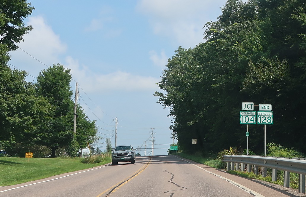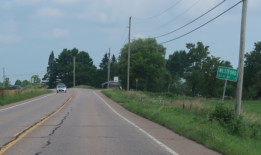 Soon thereafter, we’ll enter Westford. We’re three miles from Route 128’s northern terminus at VT 104.