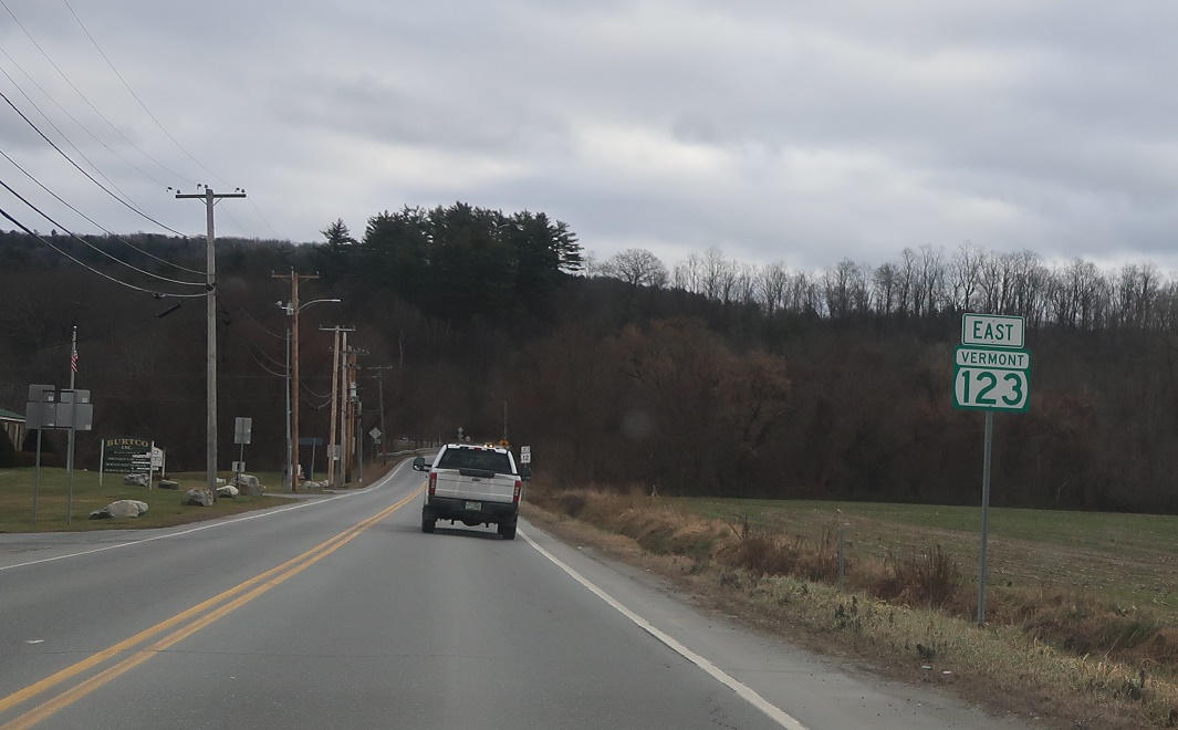 Reassurance shield as Vermont 123 begins. 123 is a very short connector to New Hampshire.