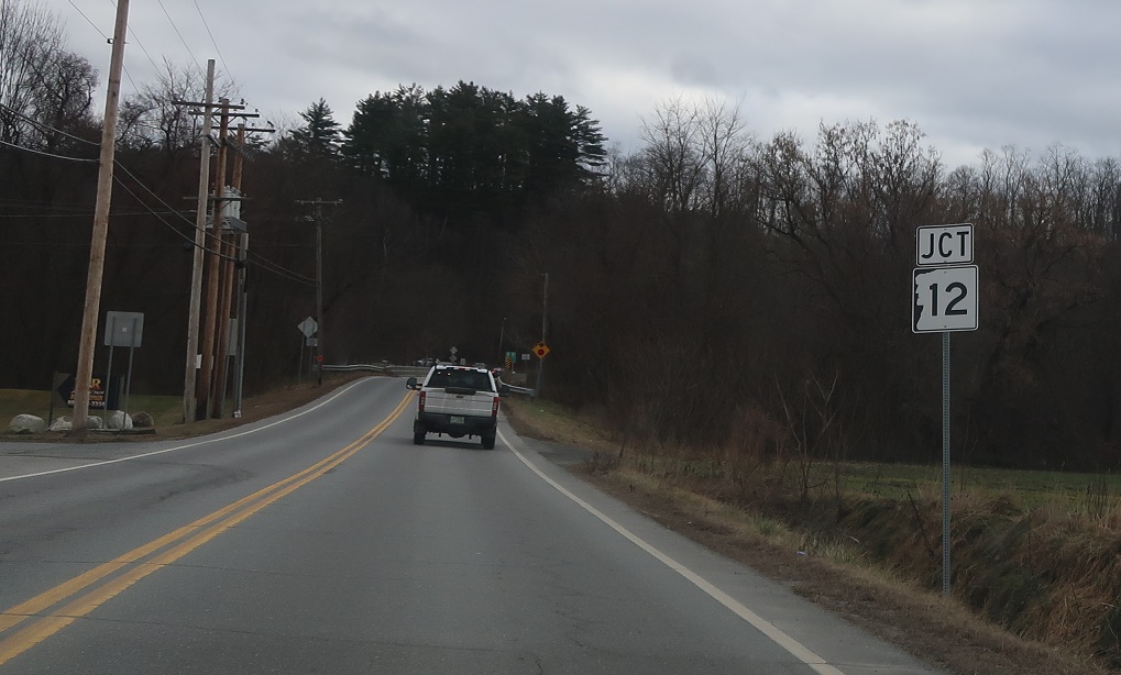 Junction New Hampshire Route 12 ahead as we cross into the Granite State.