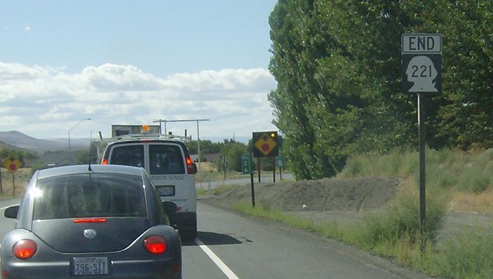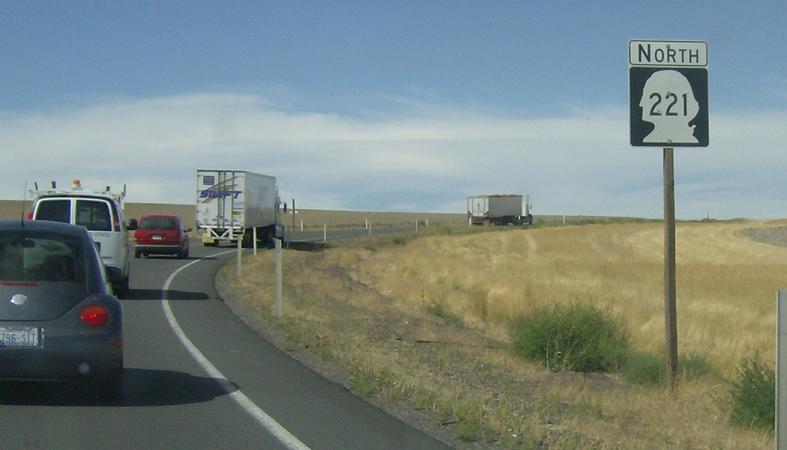 No reassurance shield at the beginning of 221, though there used to be one in 2008. SR 221 carries a ton of truck traffic from the aggrarian areas along the Prosser-Paterson corridor to Hermiston, Oregon. As such t’s a pretty nice road. Very wide with speed limits of 65- not what you would assume looking at the map where it just looks like a backroad
