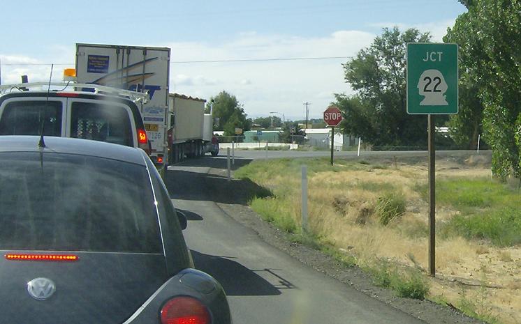 We come to a junction with SR 22, which heads along the west side of the Yakima River paralleling I-82.
