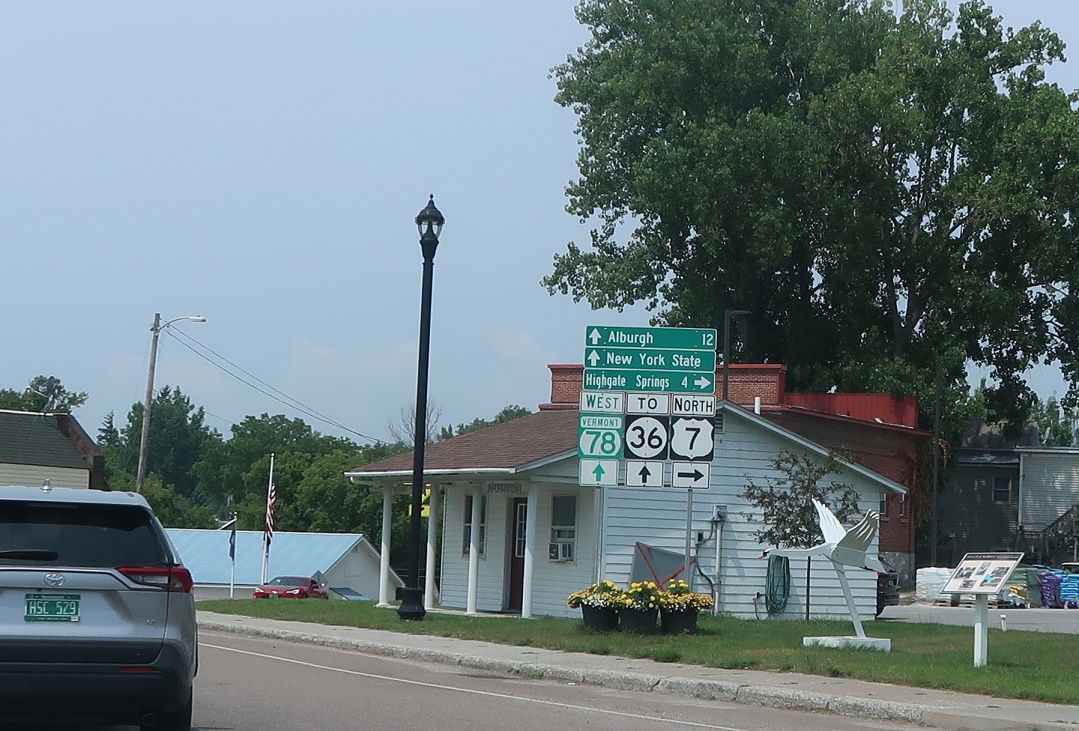 Turn right for 7 north to Highgate Springs. Stay straight for 78 west to Alburgh, New York State, and Route 36.