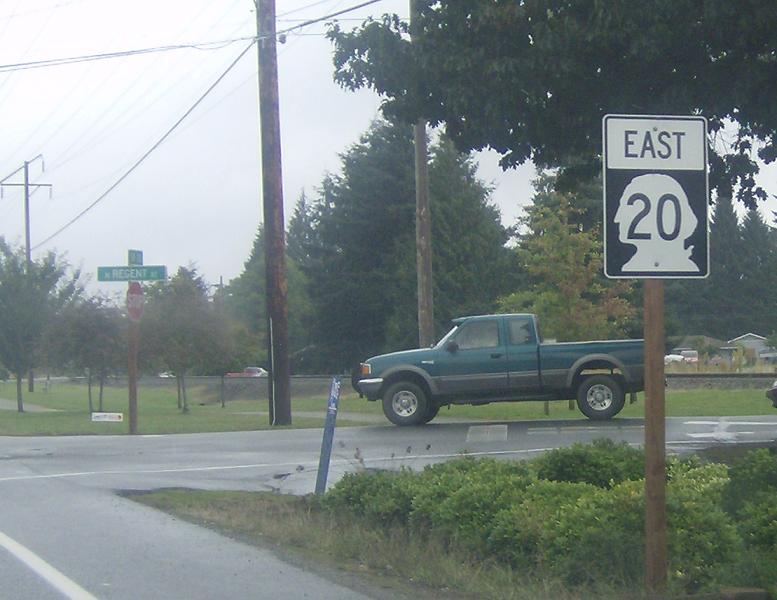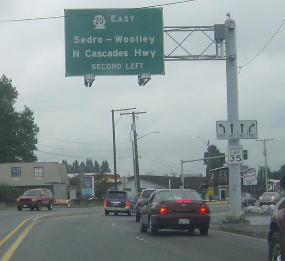 After crossing under I-5 SR 20 enters Burlington and will turn left in a couple blocks