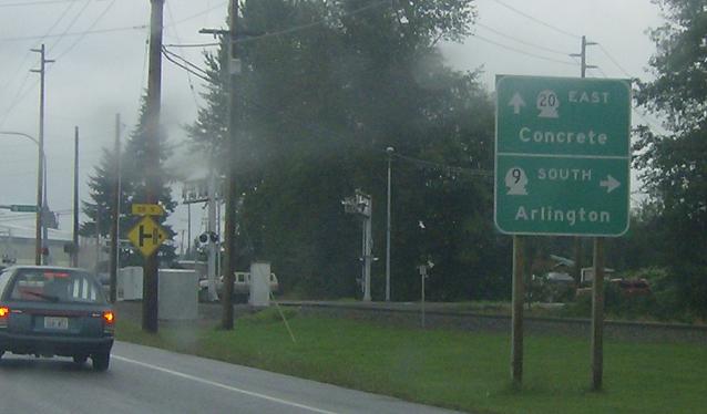 Junction SR 9 coming up. SR 9 south heads south towards Arlington. SR 20 east will join SR 9 north through Sedro-Woolley