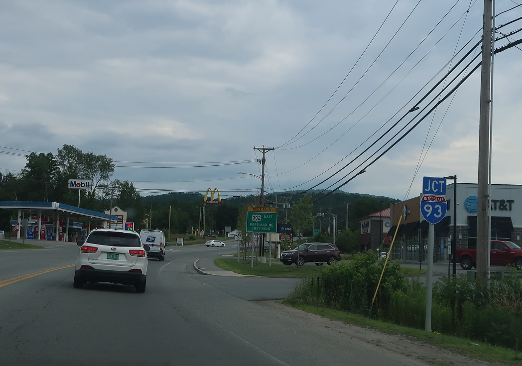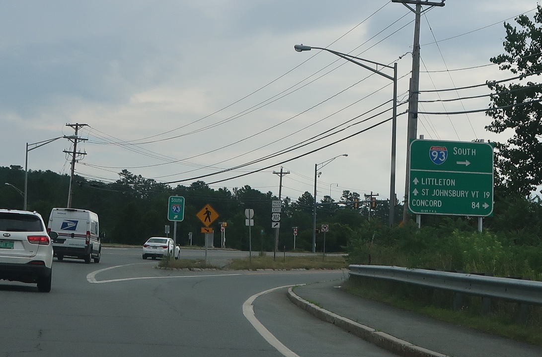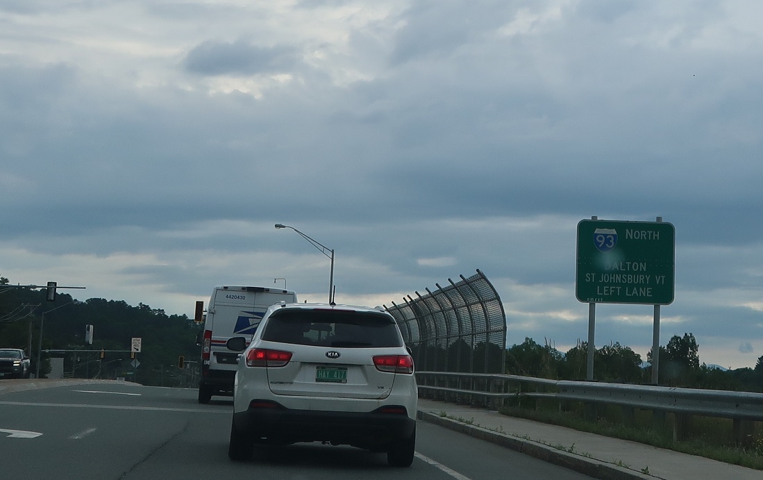 Turn left ahead for I-93 north to Walton and St. Johnsbury, Vt.