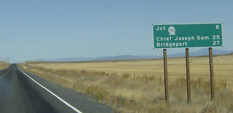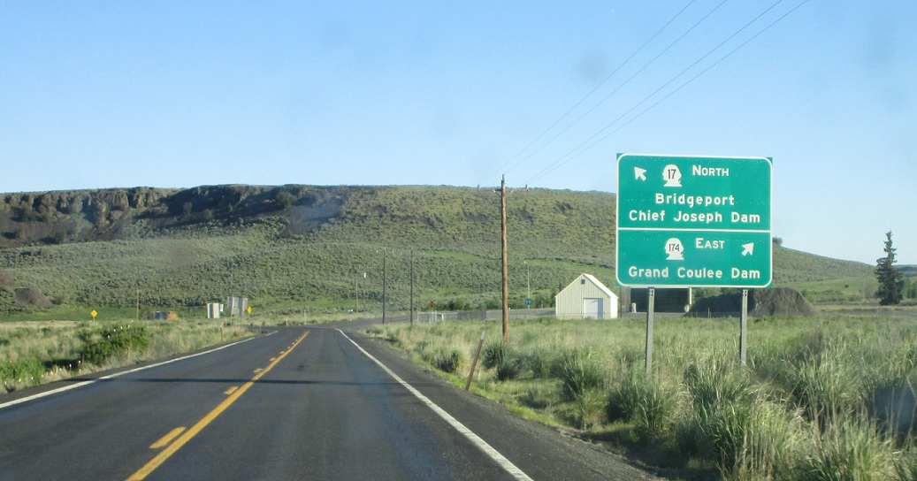 Bear left for SR 17 up to Bridgeport and US-97, bear right for SR 174 east towards the dam