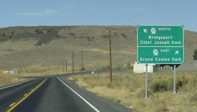 SR 174 coming up pretty soon, which heads east to the Grand Coulee Dam