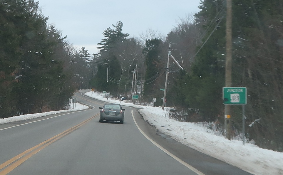 Turn left for Route 123 north to Sharon. 123 south will join 124 east through New Ipswich center.