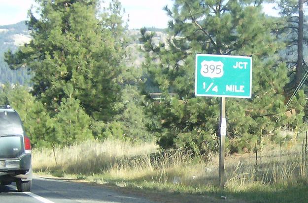 Junction US-395 coming up in a quarter mile. 395 north goes to Canada and 20 east travels with 395 south