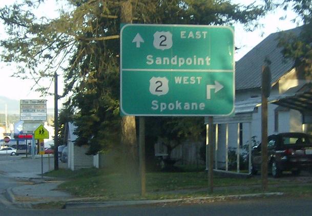 Turn right for 2 west back towards Spokane, stay straight to head a couple blocks east on US-2 into Old Town, Idaho and destinations beyond