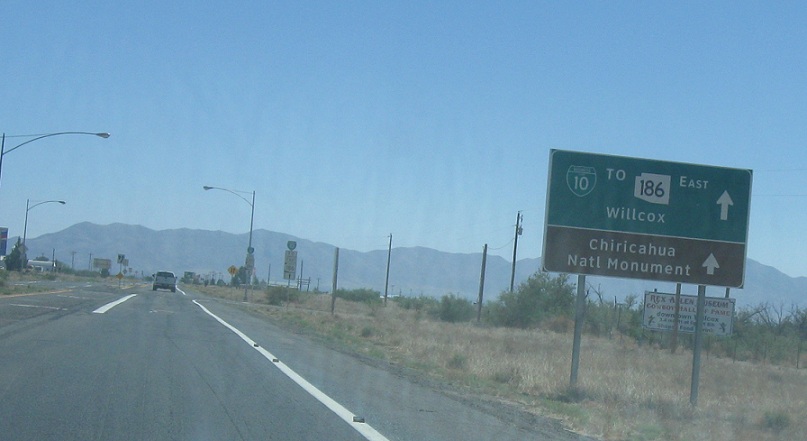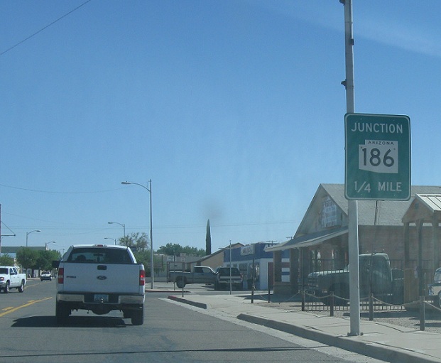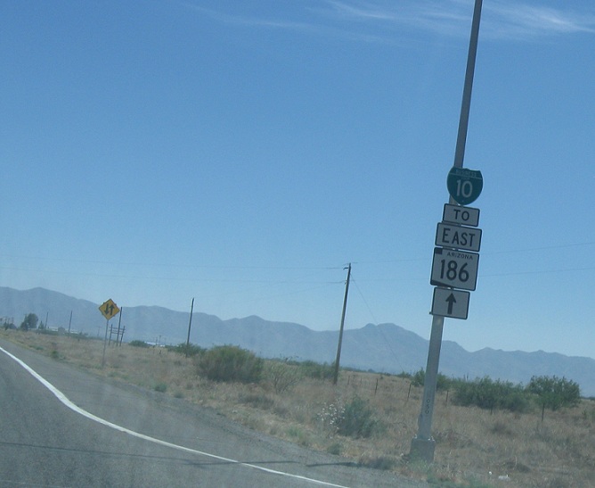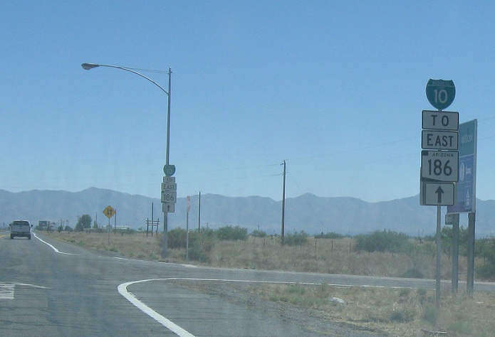 Stay straight for business 10. Turn right for SR 186 towards Chiricahua and stay straight for 186 towards I-10. 10 Business and 186 will run concurrent for just under a mile