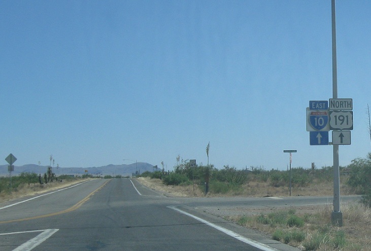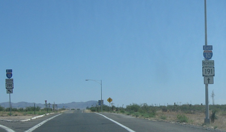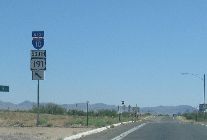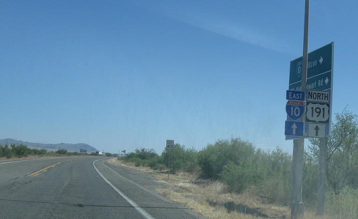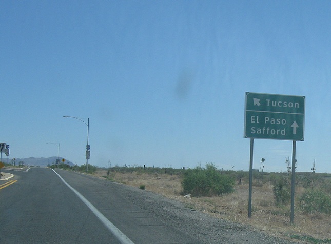 Keep left for I-10 west/US-191 south to Tucson and right for I-10 east/US-191 north to El Paso and Safford