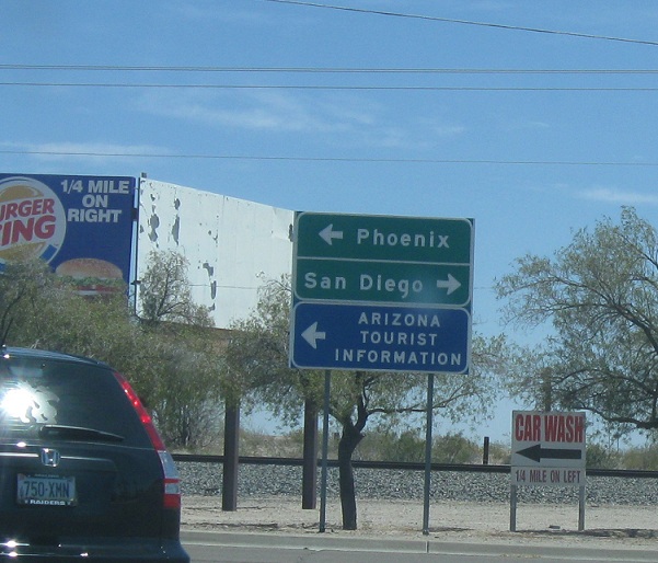 Turn right for 8 business west to I-8 to San Diego, and left for 8 business east to SR 85 North to I-10 east to Phoenix