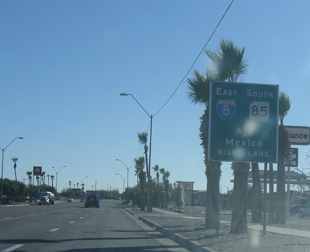 Stay in the right lane for SR 85 South towards Ajo and Mexico. 85 South is the only access to I-8 East from this side of town
