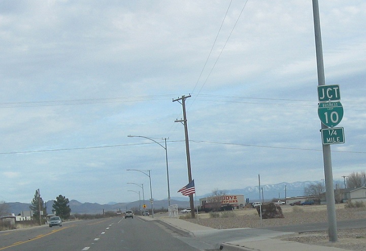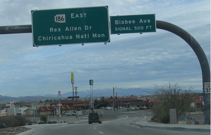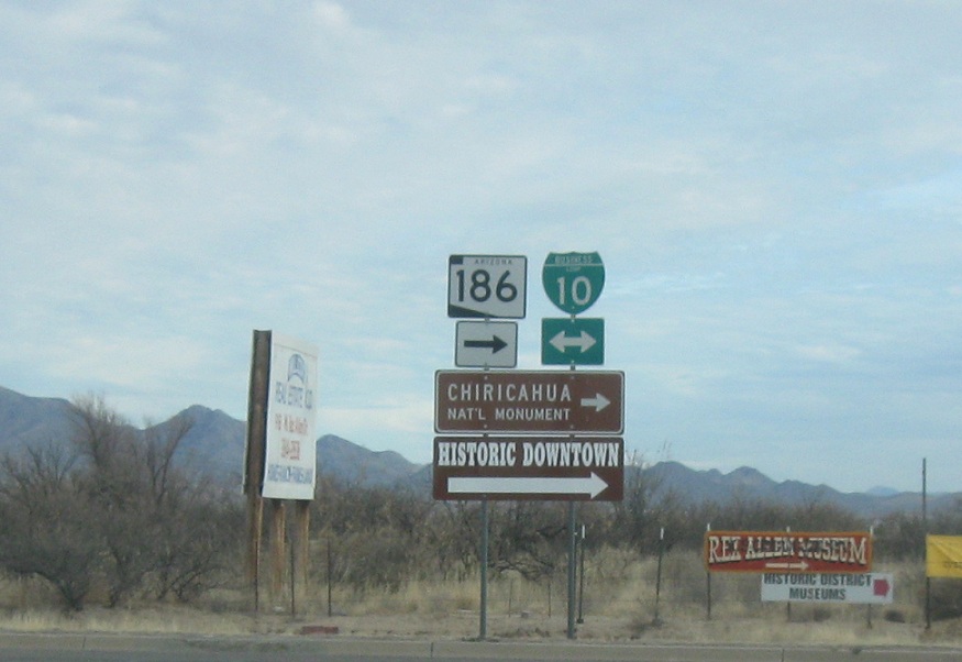 Turn right for I-10 business west and SR 186 east, which is the only wrong-way concurrency in Arizona. Turn left for I-10 business west