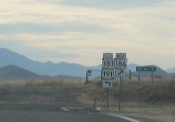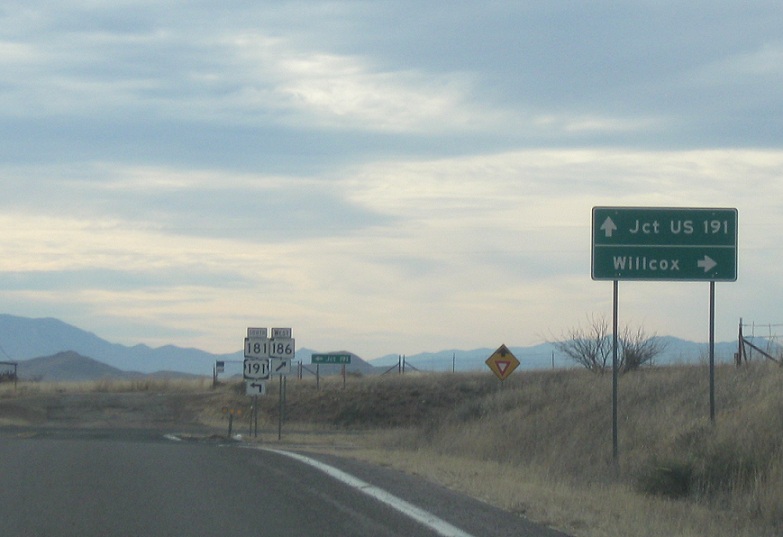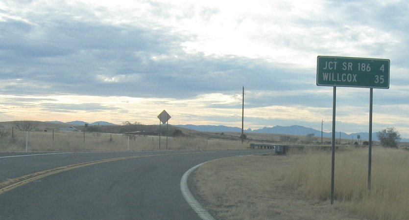 4 miles later, we’ll approach SR 186. Follow 186 west to Willcox and 181 south to US-191