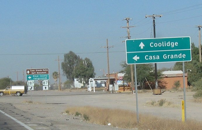 Follow 87 and 287 north for Coolidge and 287 South (west) towards Casa Grande.