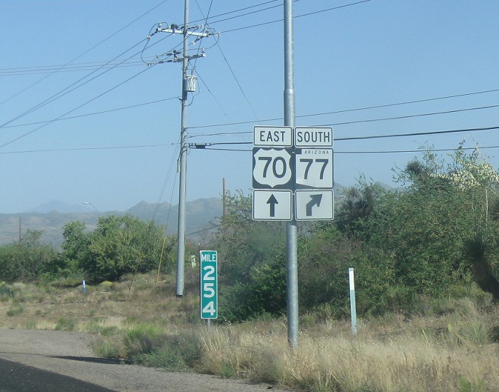 Follow 77 south to Winkelman and Tucson. Stay on 70 for Safford