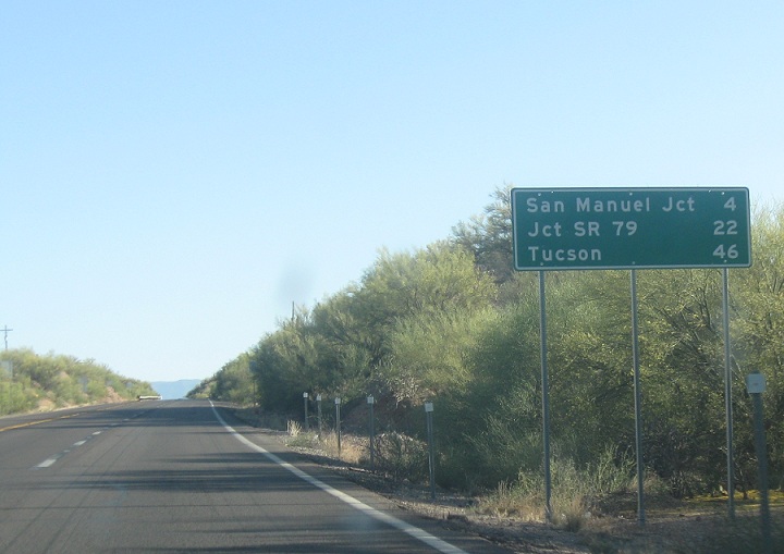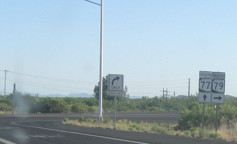 Follow 79 north to Florence and Phoenix. Take 77 south to Tucson. This used to be the southern terminus of SR 77, with US-80 west following 79 to Phoenix and 80 east following 77 into Tucson. Once 80 was decommissioned, 79 was created and 77 was extended.