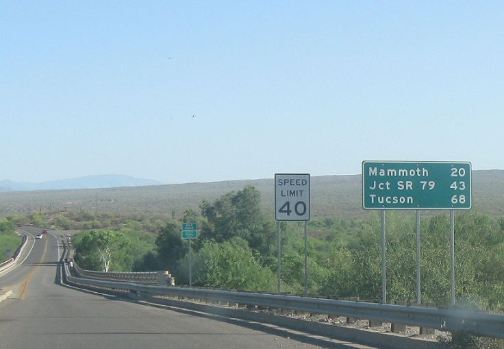 43 miles to SR 79 as we head out of Winkelman and Gila County. We’ll enter Pinal County on the other side of this bridge
