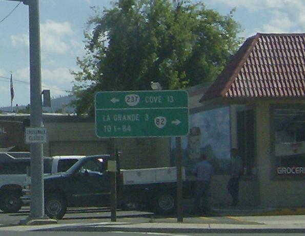 Junction Oregon 237 coming up, which runs out to Cove and then back down to I-84 by North Powder