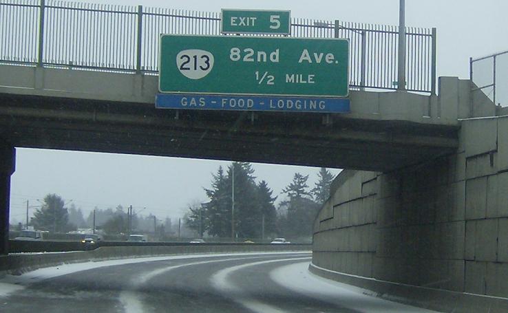 Oregon 213 exits right at the 5 mile marker. Also a reassurance shield for 84/30