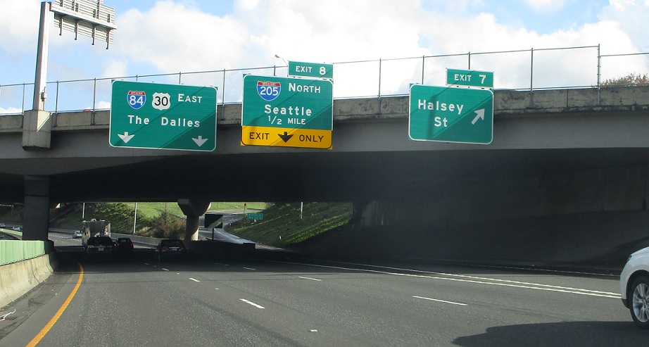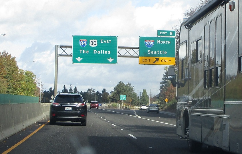 Exit for I-205 north, which heads up to I-5 north of Vancouver, Wash.