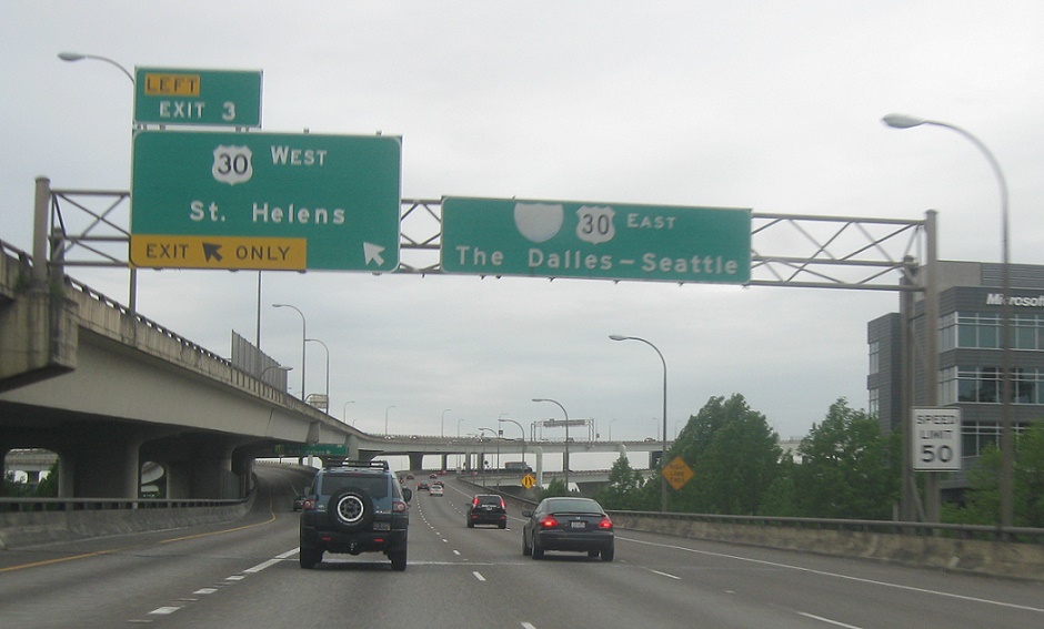 Exit for US-30 west towards St. Helens (the town, not the mountain).