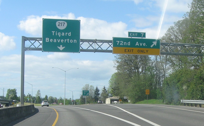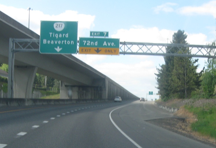 As 217 begins, we’ll immediately approach the 72nd Ave. interchange.