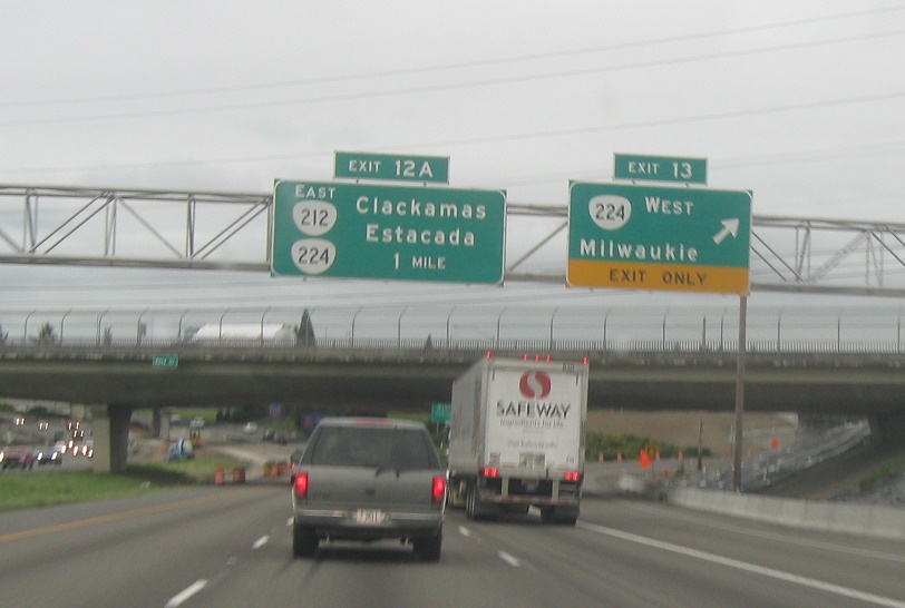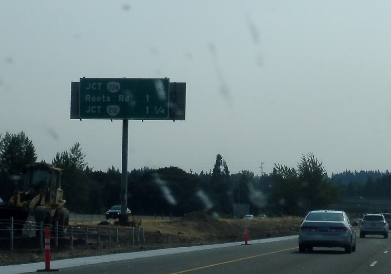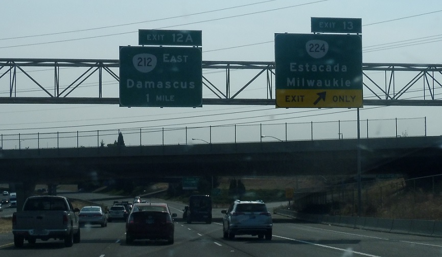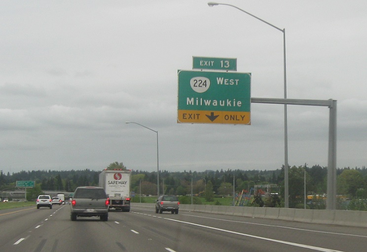 Exit for OR 224 in both directions. This stretch of OR 224 east is the newest stretch of highway in Oregon, having until 2016 run concurrent with I-205 south and OR 212 east.