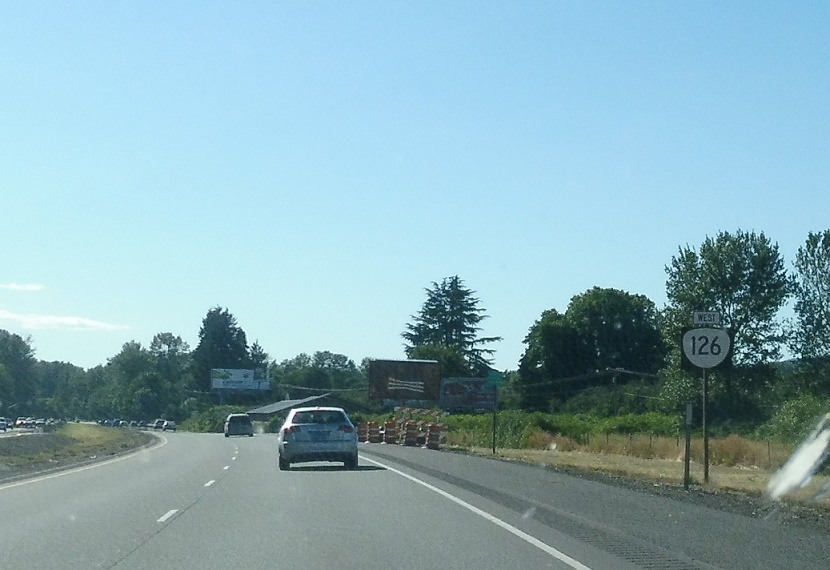 Reassurance shield as 126 splits from its business loop. 126 is a limited access east-west highway across the northern portions of Eugene and Springfield.