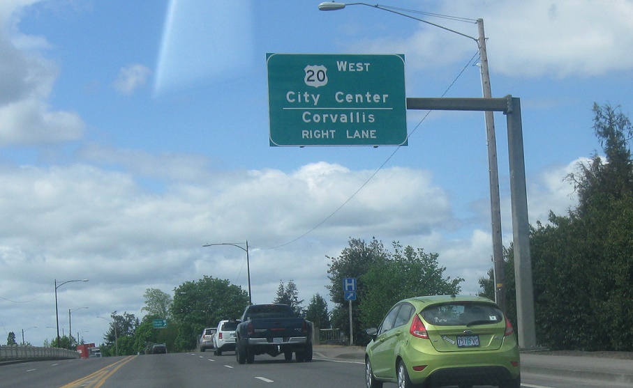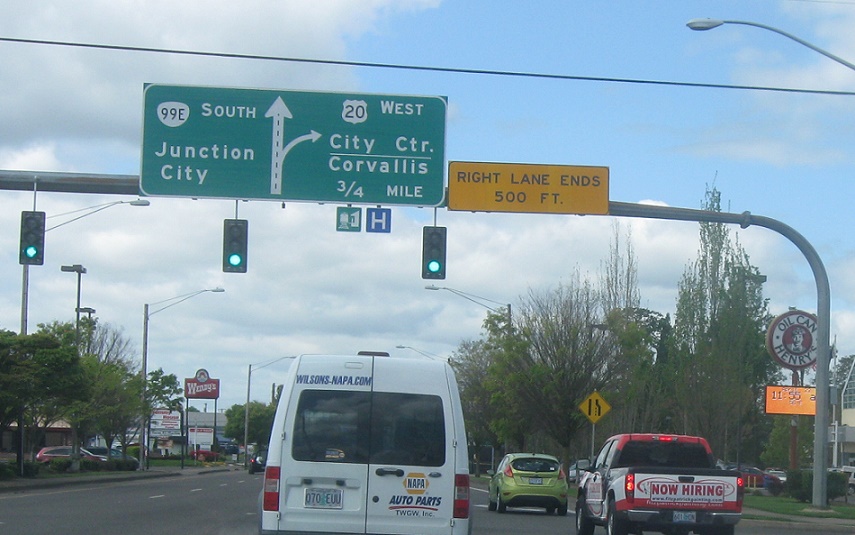 As 99E joins US-20, it will prepare to split in 3/4 of a mile.