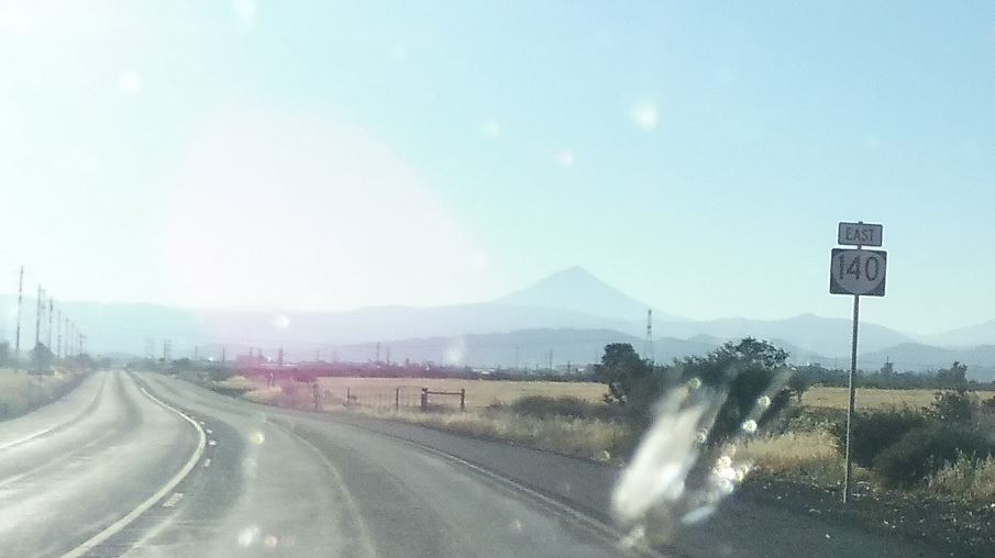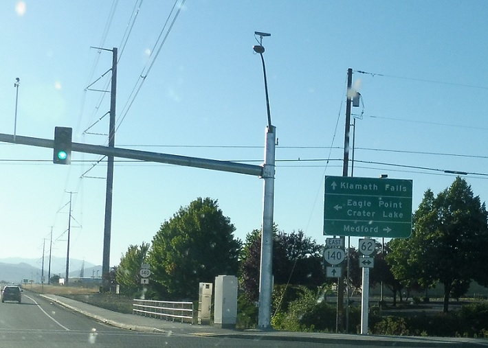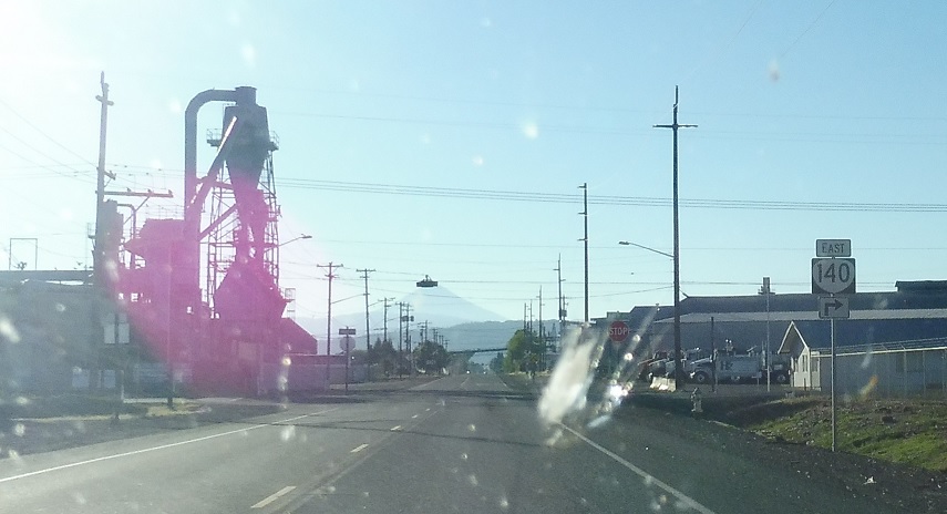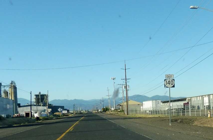 A couple miles later, we’ll enter a large industrial area north of Medford. Here, turn right to head south and stay on 140 east.