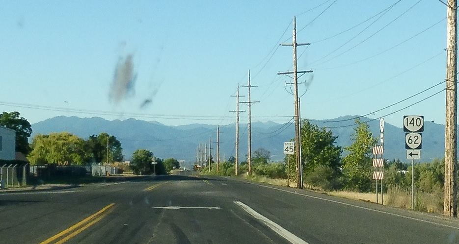 A few blocks later, turn left to stay on Oregon 140. OR 62 is a block away, once we make the turn.