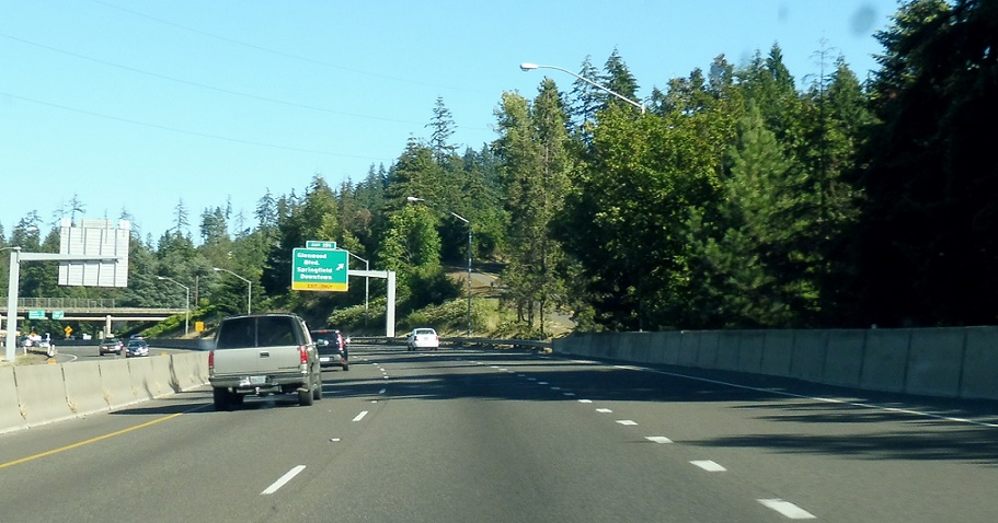 As soon as OR 99 merges onto I-5, exit here for unsigned Oregon 225.