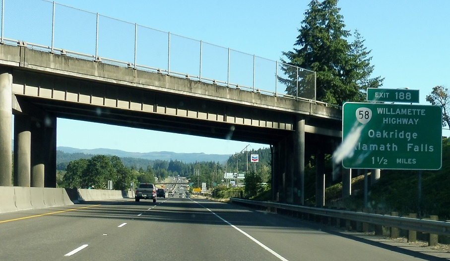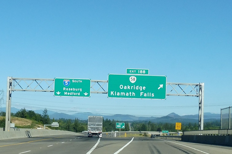 In one mile, exit for Oregon 58 towards Klamath Falls.