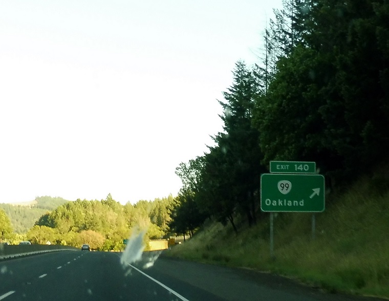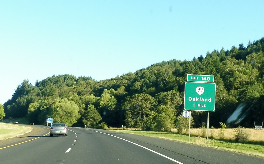 Exit for Oregon 99 south, which heads to Oakland and Sutherlin.