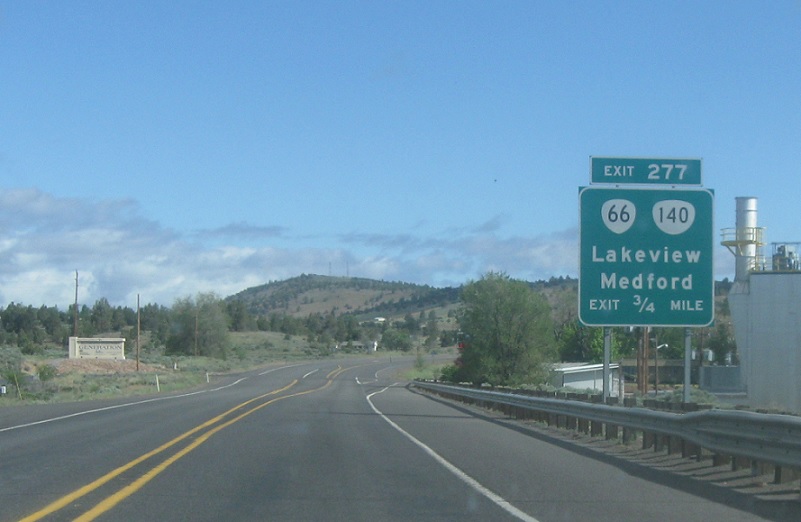 Exit for Oregons 66 and 140. Downtown Klamath Falls is still ahead.