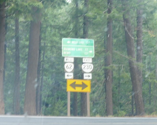 Follow 230 east to Diamond Lake and Bend. Take 62 west to Medford.