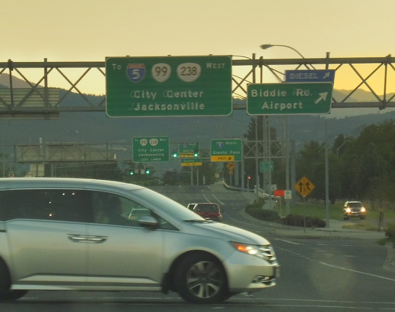 A couple miles later, we’ll approach I-5. Follow 62 to I-5, Oregon 99, and Oregon 238.