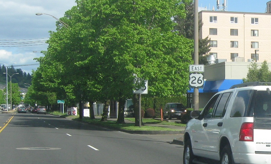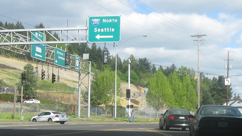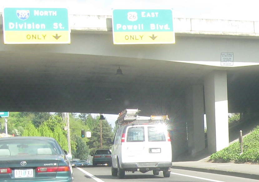 Powell Blvd continues to carry US-26. Turn left for I-205 north and a ramp to Division St.