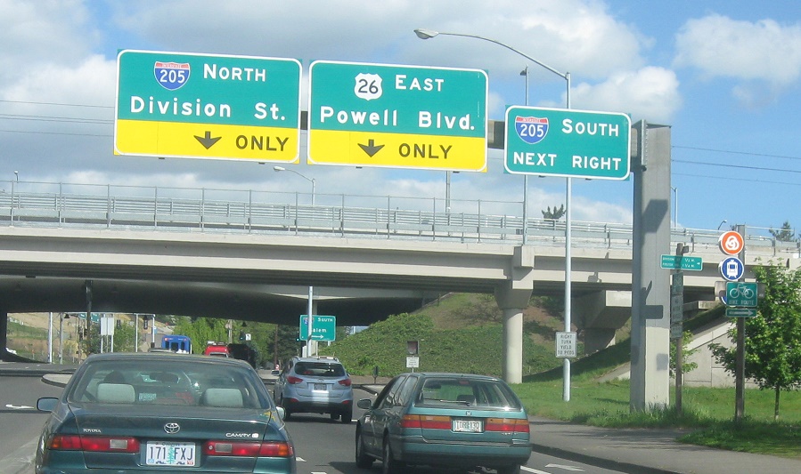 Keep right for I-205 South. Stay straight for US-26/Powell Blvd. Keep left for I-205 North.