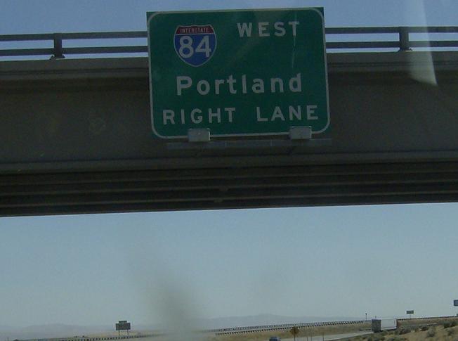 Weird signage on an interstate highway, but still accurate in that you do want to stay straight to get TO I-84 (this may be intended to keep westbound travelers from taking US-730 west through Irrigon and Boardman to I-84, which is arguably a faster route (and my route of choice))