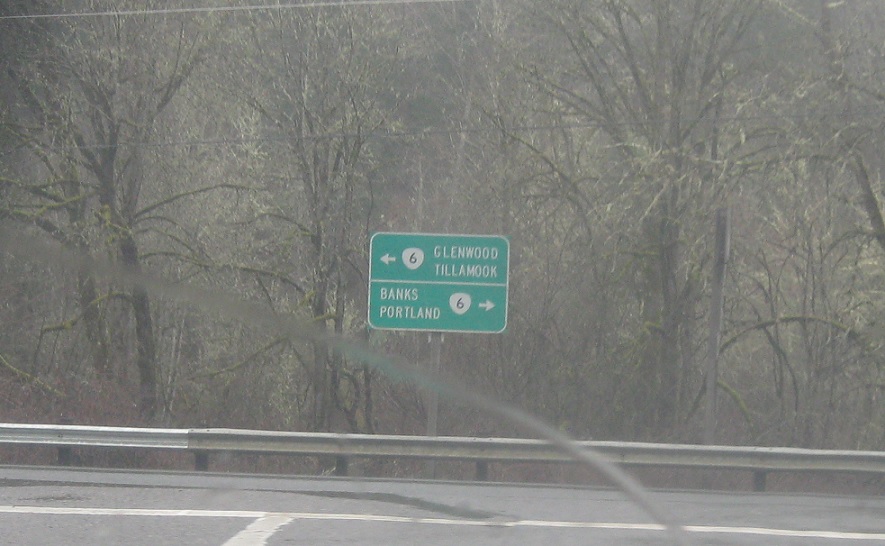 Without advance signage (likely on account of county maintenance), we’ll approach OR 6 a few miles later. Take 6 west to Glenwood and Tillamook. 6 east heads to Banks and Portland.