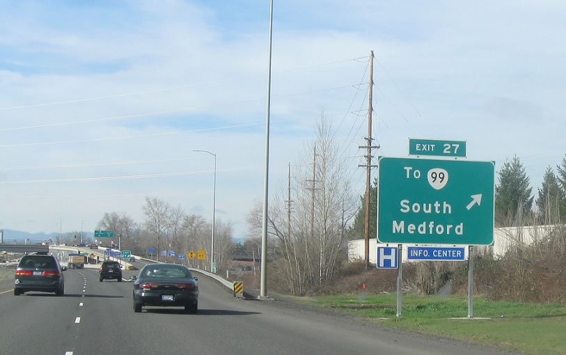 A couple miles later, we’ll enter Medford. Exit to follow Garfield St west to Oregon 99.