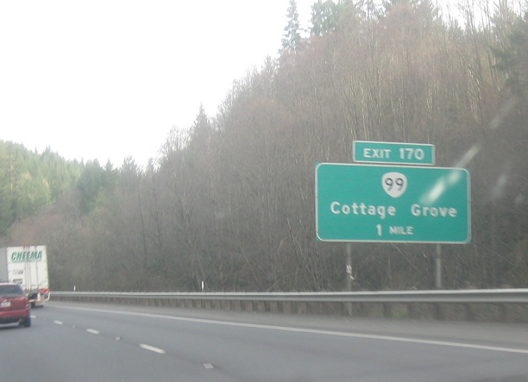 Exit for 99 mainline, which serves as the Cottage Grove business loop.
