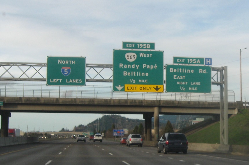 Just after the I-105 interchange, we’ll approach the Oregon 569/Beltline junction.