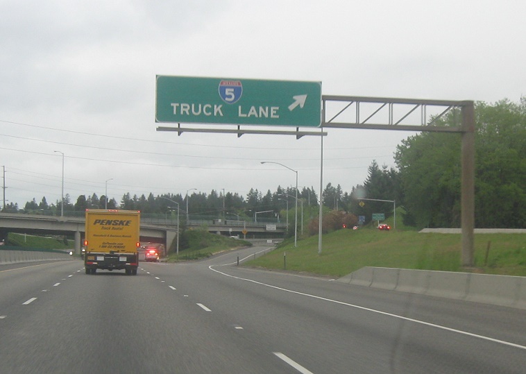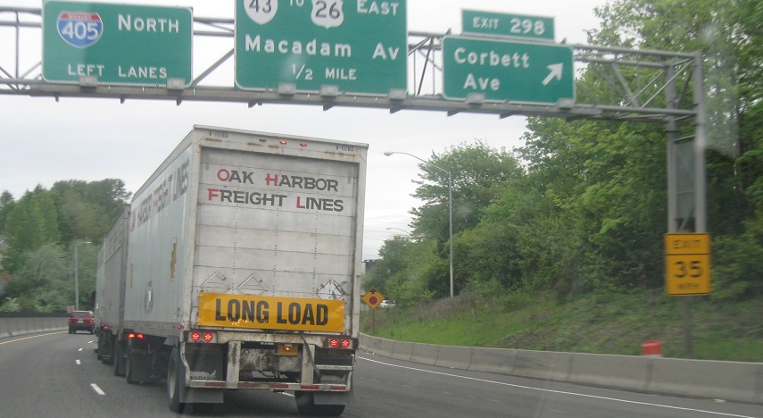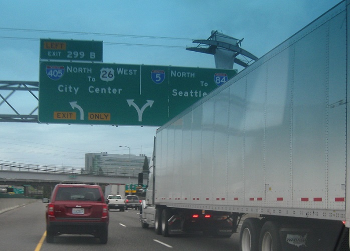 Exit here for a truck lane which heads to a deeper portion of the Barbur Blvd. underpass.