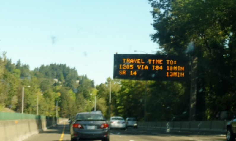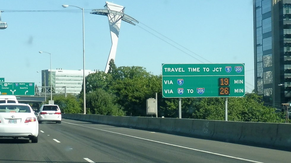 Travel time to display to the north side of the I-5/I-205 junction in Washington.
