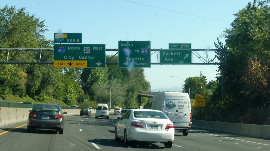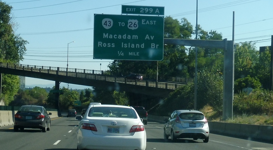 As we cross under Corbett, we’re advised of US-26 and OR 43 coming up.